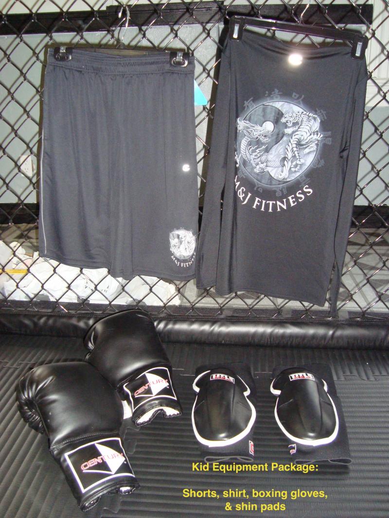 Kids:$60.00 (Shirt, shorts, shin pads, & boxing gloves)